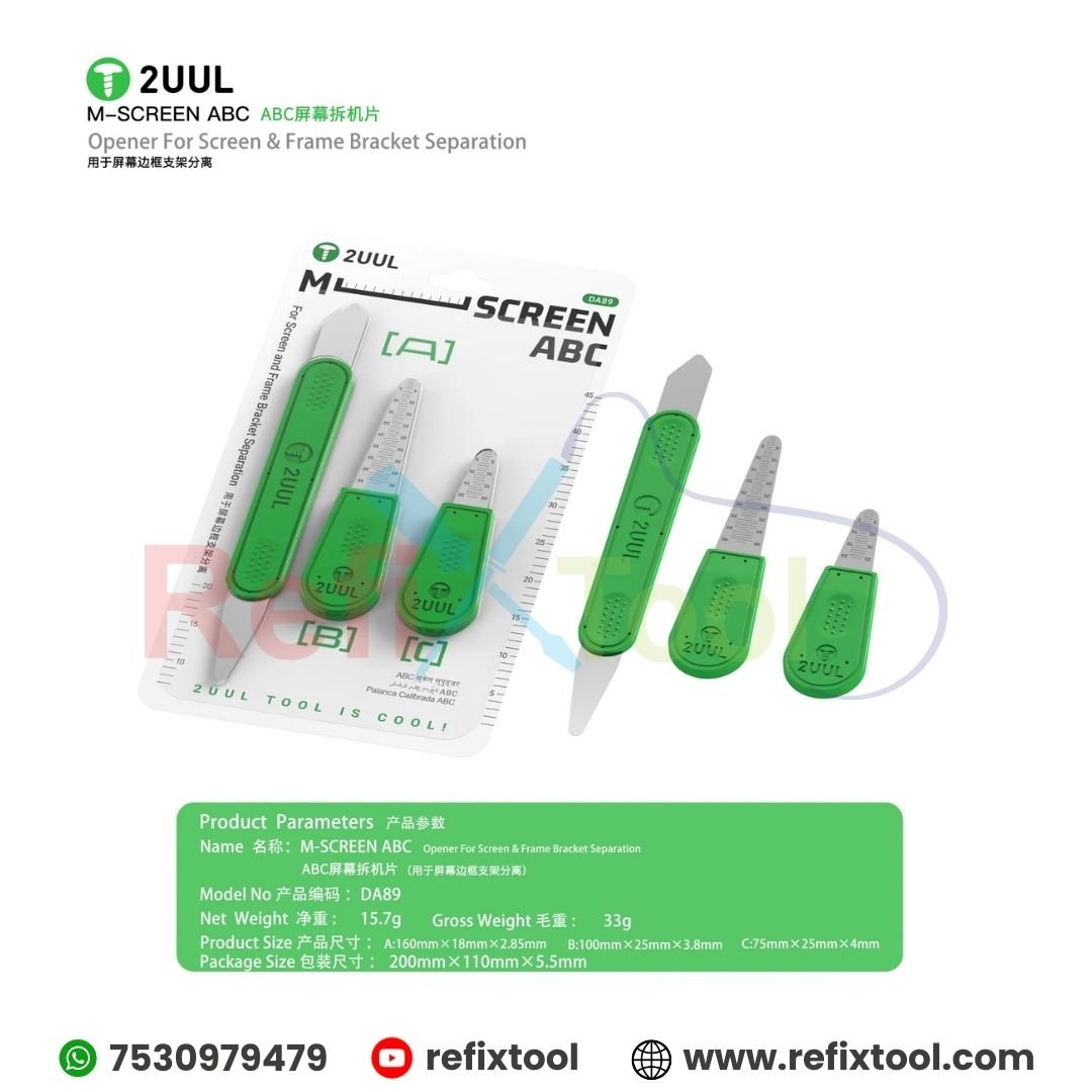 2UUL DA89 M Screen ABC Opener Professional Screen Frame Separation Tool is a professional mobile repair tool engineered specifically for safe screen and frame bracket separation. Designed to meet the daily demands of mobile phone and tablet repair work, this precision opener helps technicians remove screens efficiently without damaging delicate internal components.