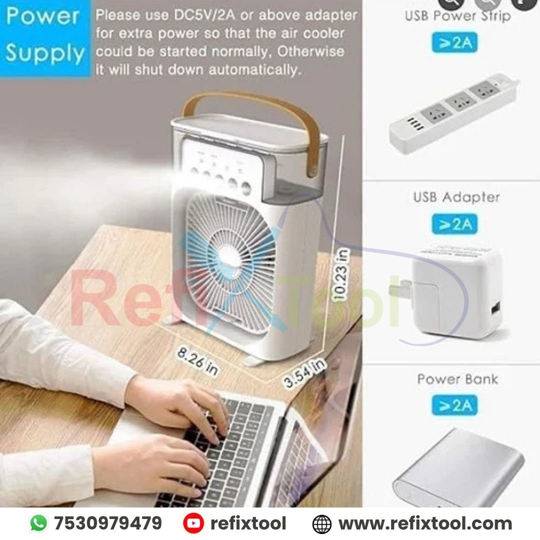 Mini Air Cooler Fan is a compact and portable cooling solution, perfect for desks, bedrooms, and personal spaces where a traditional AC isn’t practical. Designed with a water/ice cooling system, this cooler not only lowers the temperature but can also humidify and freshen your air for maximum comfort.