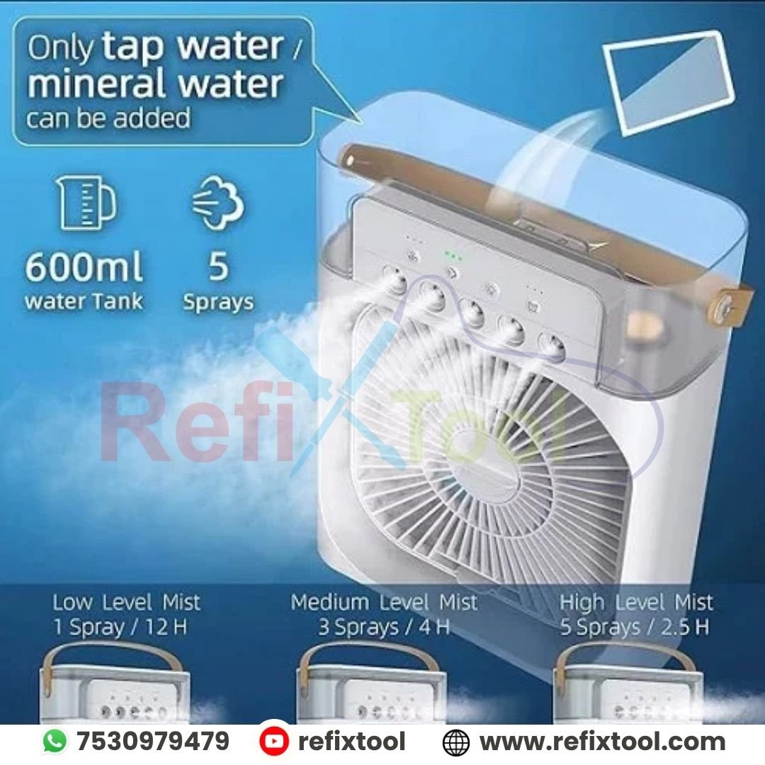 Large Water Tank: 600ml tank capacity ensures longer cooling without frequent refilling.