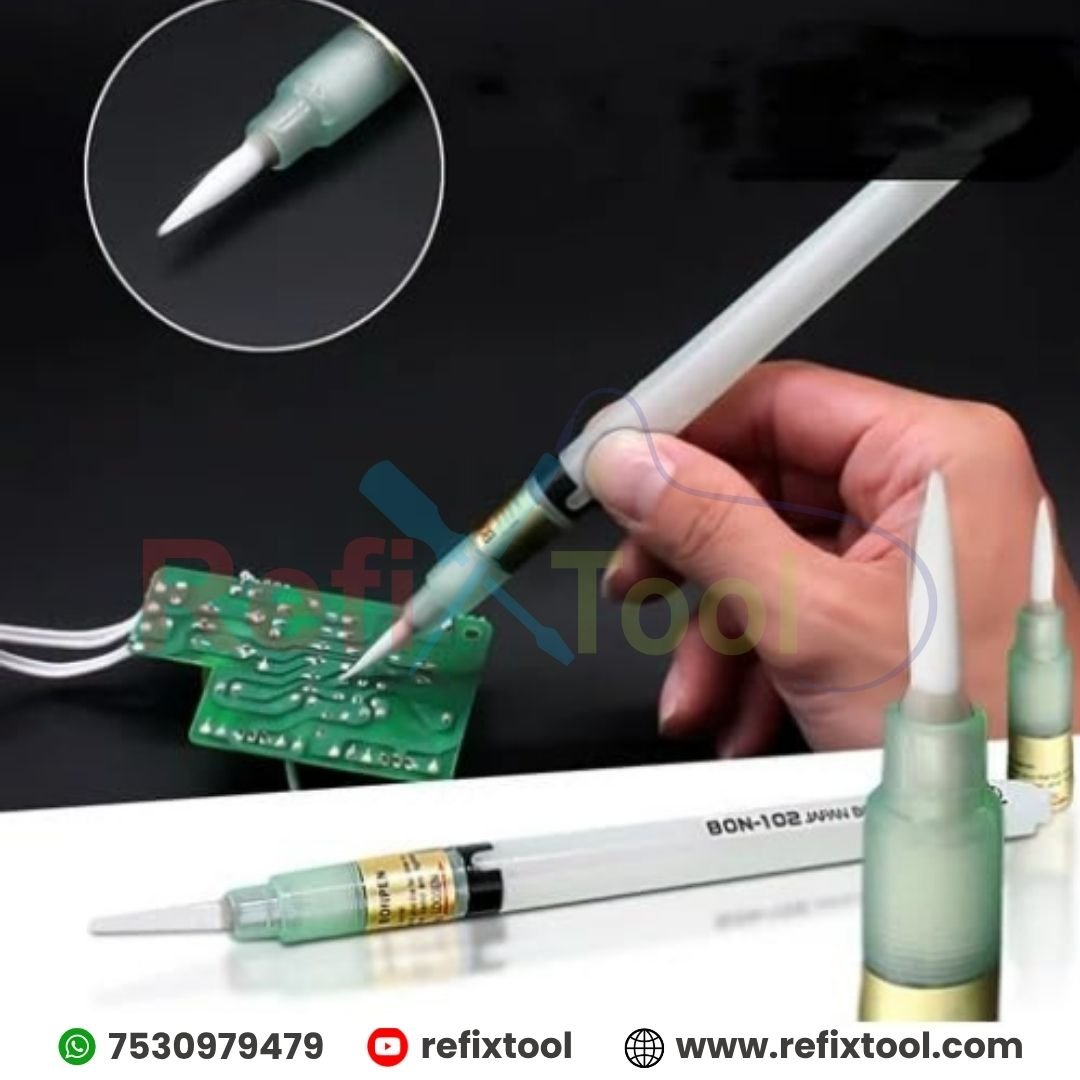 BON-102 Flux Coating Pen Original Japan Solder Paste Applicator for PCB & IC Soldering is a high-quality soldering aid tool made in Japan, designed for precise and easy application of flux during PCB soldering. Its pen-style design allows clean and controlled flux coating, making it ideal for technicians and engineers working with delicate electronic components.