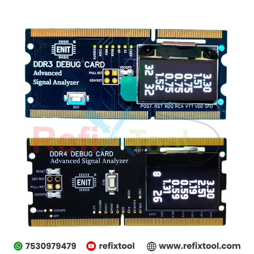 DDR3 + DDR4 Laptop RAM Debug & Signal Analyzer Combo is a professional-grade solution designed for motherboard-level laptop repair. This combo includes a DDR3 RAM Debug Card and a DDR4 Advanced Signal Analyzer, allowing technicians to quickly diagnose no display, no boot, and RAM communication issues across a wide range of laptops.