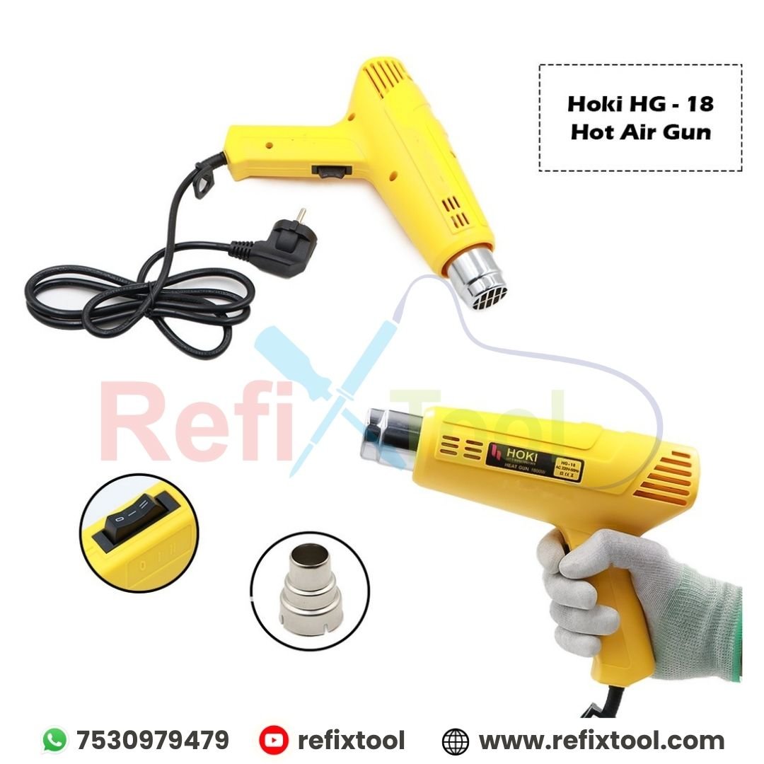 Hot Blower Gun Hoki HG 18 1800w is a versatile hot air and glue gun designed for a wide range of DIY, crafting, and repair applications. Combining powerful heating, dual temperature settings, and ergonomic design, this tool delivers precision, efficiency, and comfort for professional and home users alike.