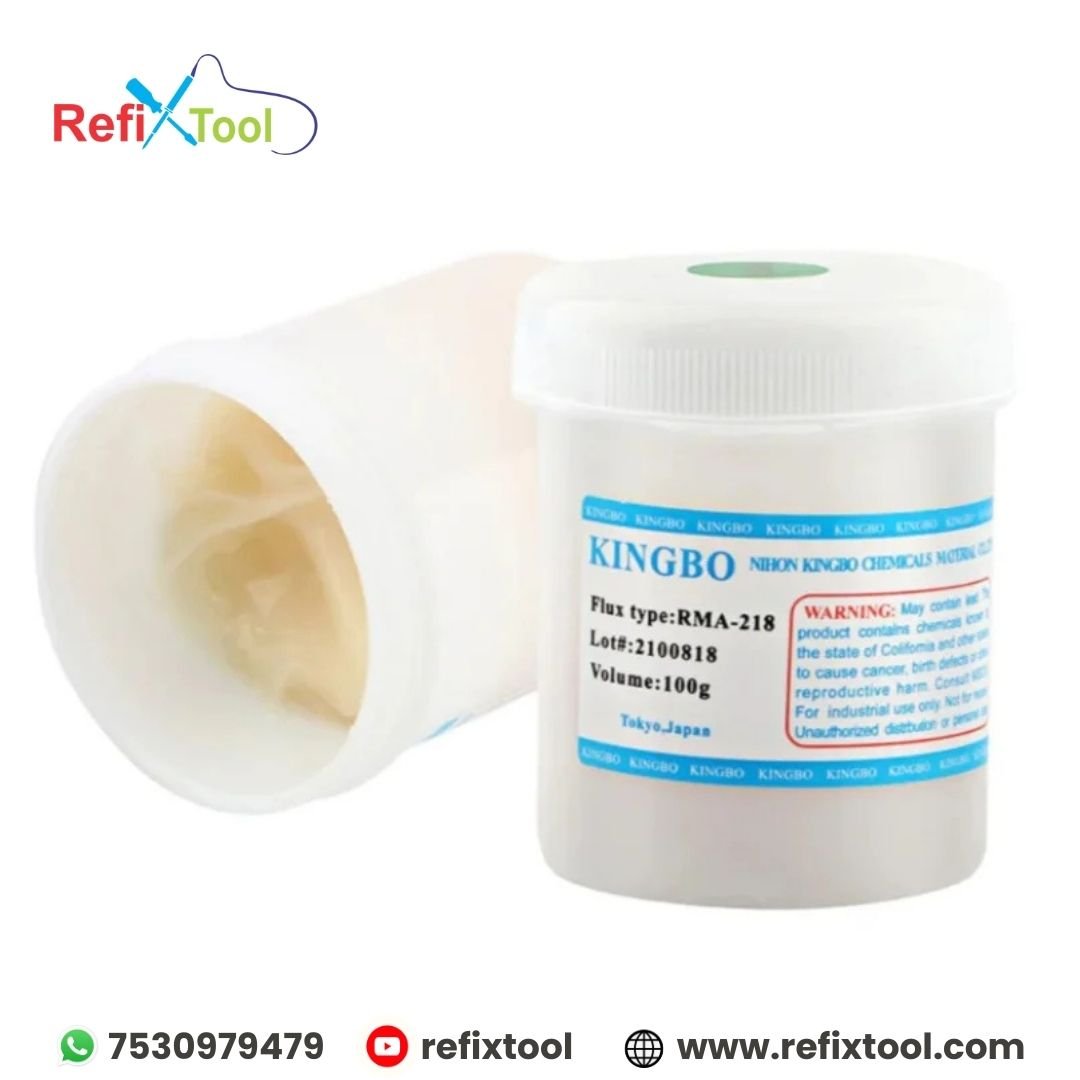 Kingbo Flux Paste Kingbo RMA 218 Flux 100g is a high-performance, high-viscosity, no-clean flux designed for precise and reliable soldering applications. Trusted by professionals worldwide, this flux is ideal for rework, BGA, CGA, CSP packages, and flip chip attachments.