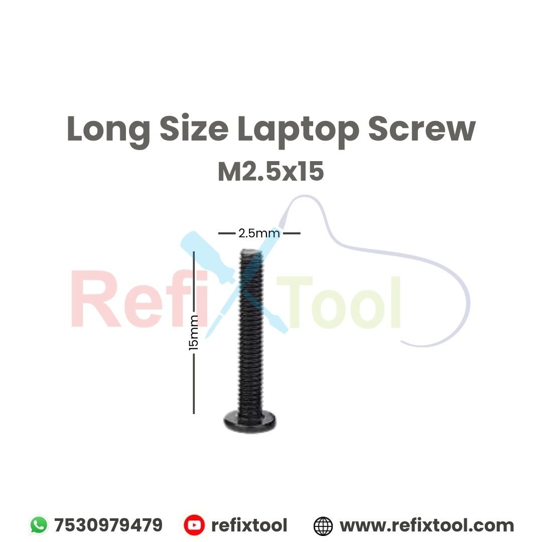 Laptop Screw M2.5x15mm Dell Hp Lenovo Laptop Screws is 2.5mm in diameter and 15mm long. Made from mild steel, this screw features a black oxide finish to protect against corrosion. Ideal for laptops and other electronics that require precision fastening.
