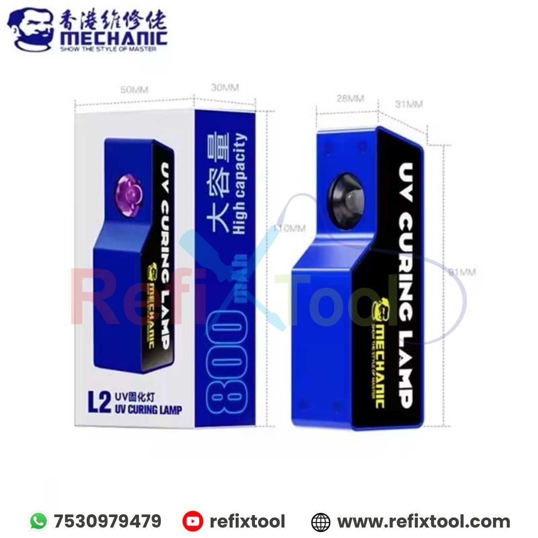 Mechanic L2 UV Curing Lamp UV Light UV Lamp is a compact, high-efficiency tool designed for rapid curing of UV glue, solder mask ink, optical adhesives, photosensitive green oil, resin glue, and inks. Perfect for mobile phone motherboard repairs, PCB maintenance, and other electronics applications, this lamp combines portability with fast, reliable performance.