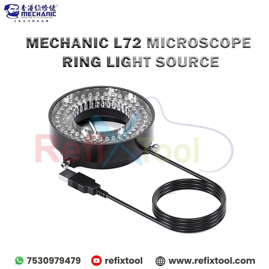 Mechanic L72 Microscope Ring Light is designed to deliver bright, uniform, and shadow-free illumination for precise microscopic observations. With 72 high-intensity LEDs, adjustable brightness, and a wide compatibility range, this ring light ensures clarity and accuracy, making it an essential tool for industrial, digital, and scientific microscopy.
