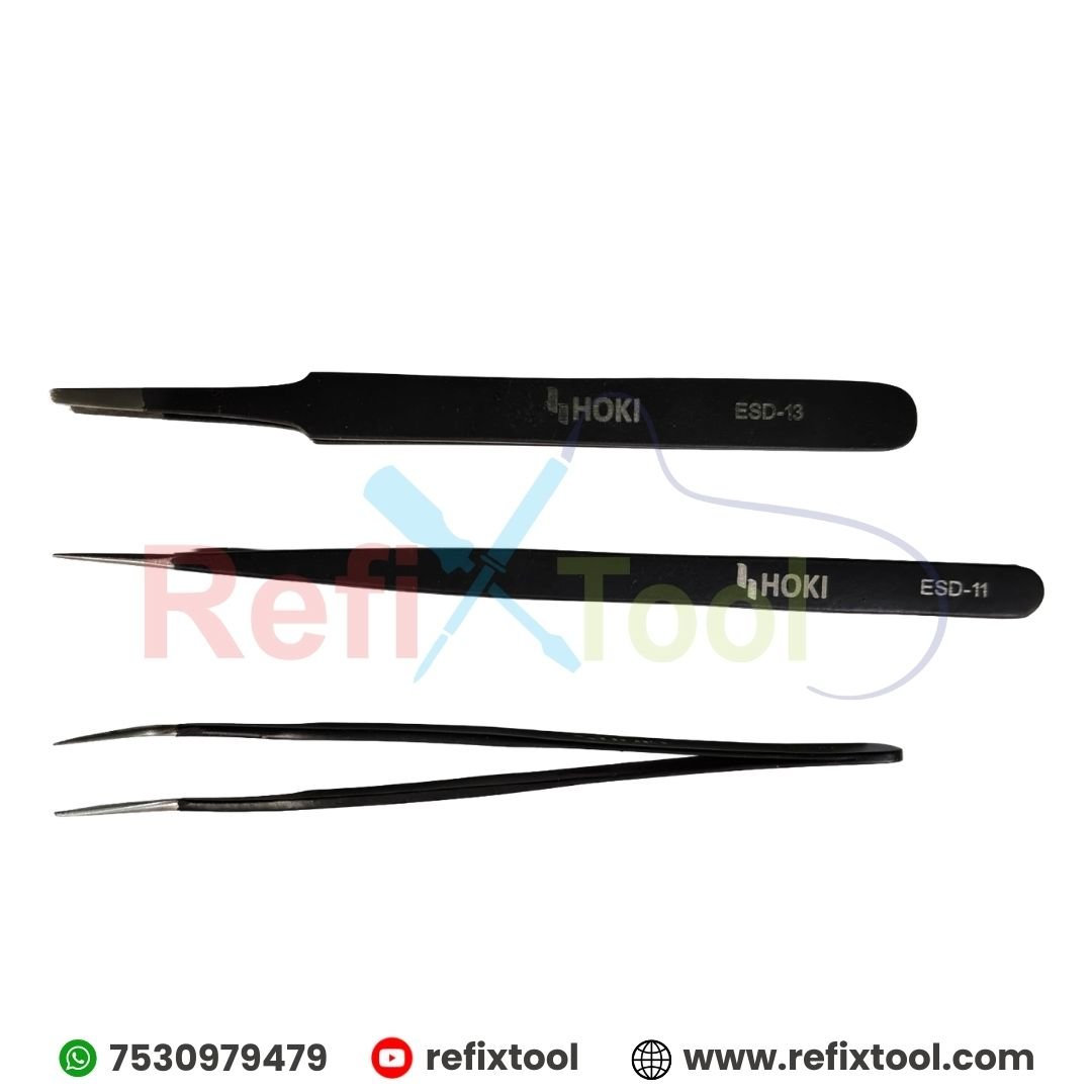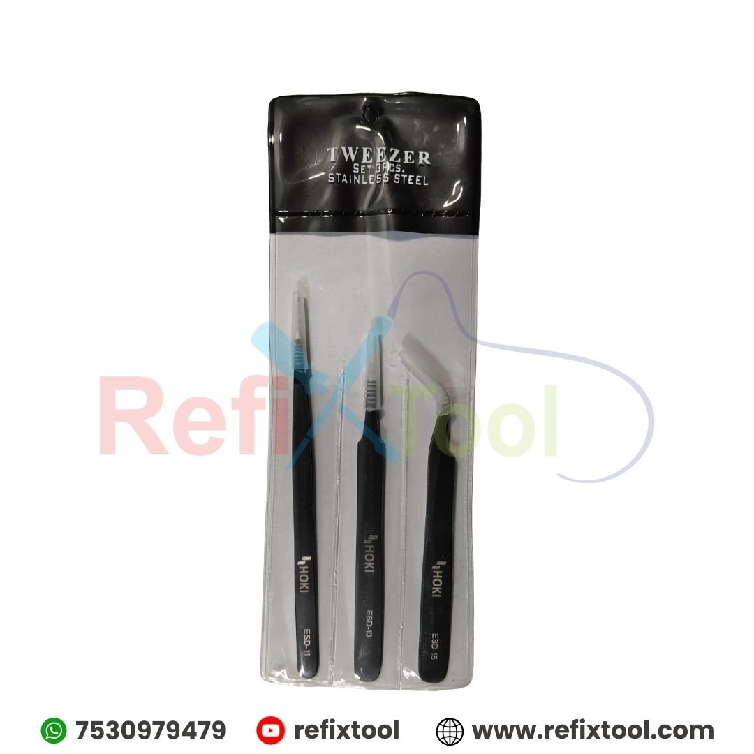 3-Piece Precision Tweezer Set: Includes straight fine tip, ultra-fine needle tip, and curved (bent) tip to handle a wide range of precision tasks.