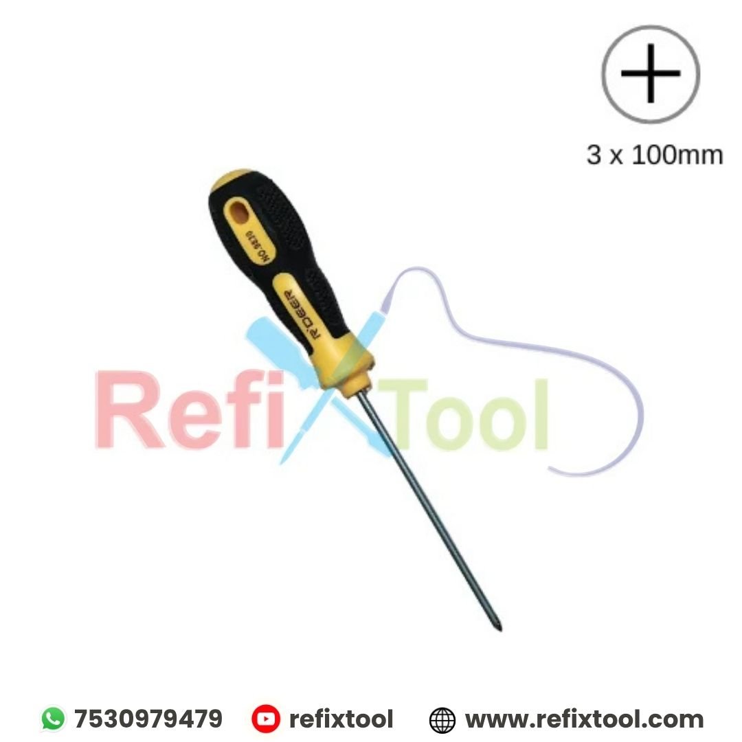 Rdeer 9830 3x100mm Handy Phillips Screwdriver is a durable and high-quality hand tool designed for precision, comfort, and long-lasting performance. Built with a CR-V steel bar and an ergonomically designed bi-material handle, this screwdriver provides excellent torque with less effort, making it ideal for both professional technicians and everyday home use.