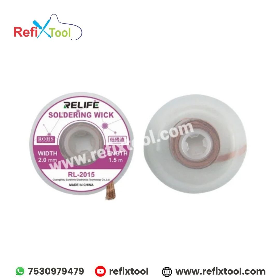 Relife Desoldering Wick RL-2015 is moval of excess solder from electronic components and PCBs. Crafted with high-quality copper wire, this desoldering braid ensures clean, professional results every time. Perfect for both hobbyists and professional technicians, it makes soldering corrections and rework simpler and more efficient.