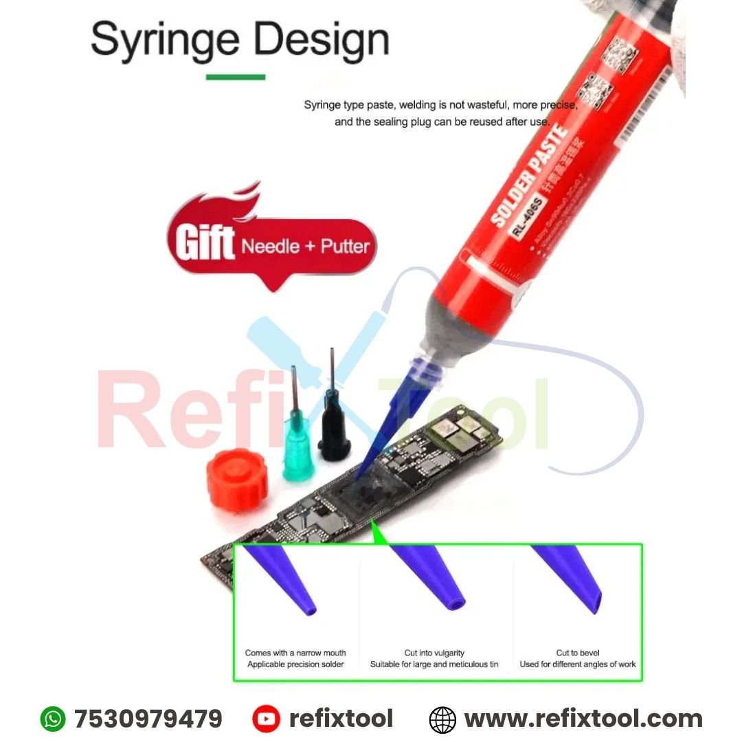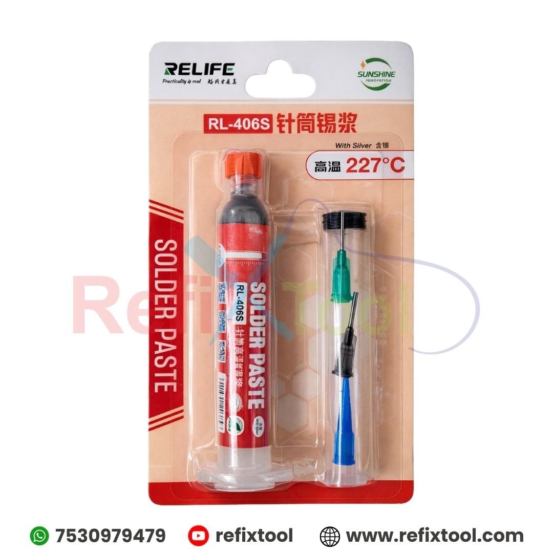 Relife RL-406S Lead-Free Solder Paste – High-Performance Precision Soldering is a premium lead-free soldering material designed for professional electronics repair and micro-soldering applications. With fine particle size, strong viscosity, and excellent wetting performance, it delivers smooth, reliable solder joints and stable reflow results. It is especially suitable for smartphone motherboard repairs and middle-layer soldering tasks.