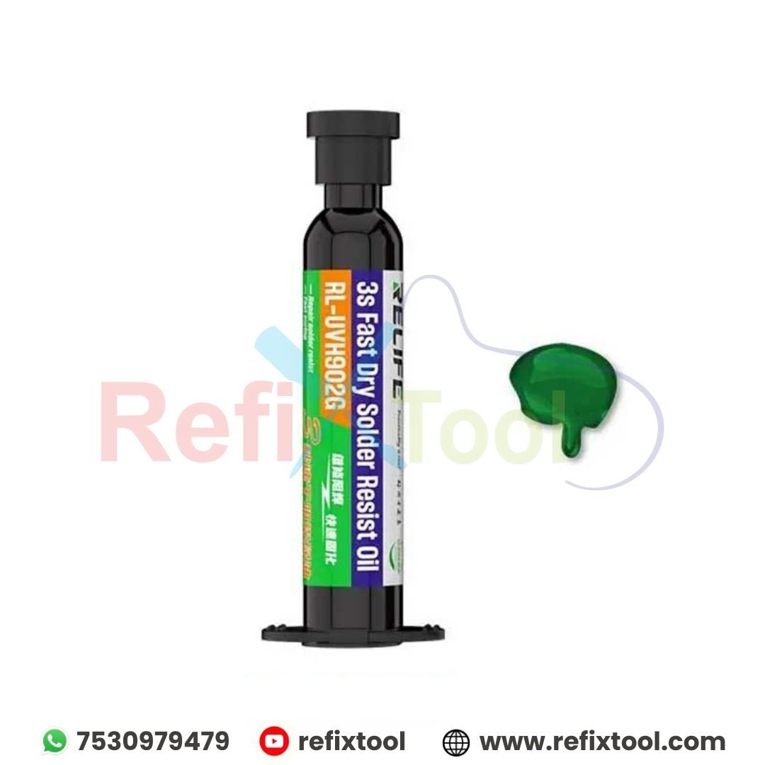 Relife 10cc RL-UVH902 Black UV Solder Mask Ink is designed for fast and reliable PCB repair, mobile phone motherboard jumping wire fixes, and BGA CPU soldering protection. With its 3-second rapid curing formula, it saves time and provides strong, durable protection for delicate components.