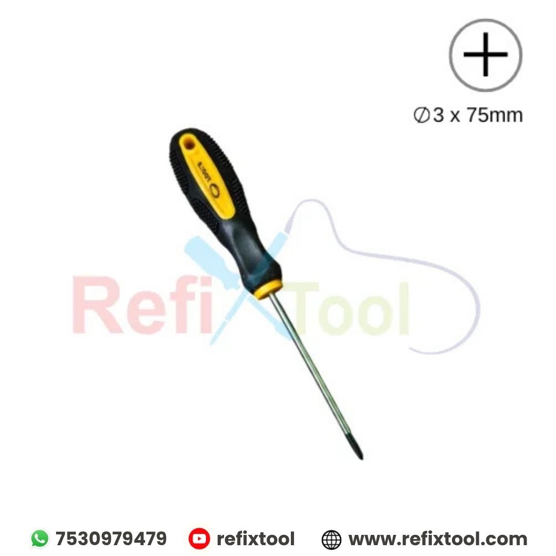 Tools PH0(3)x75mm Handy Phillips Screwdriver is a durable and high-quality hand tool designed for precision, comfort, and long-lasting performance. Built with a CR-V steel bar and an ergonomically designed bi-material handle, this screwdriver provides excellent torque with less effort, making it ideal for both professional technicians and everyday home use.