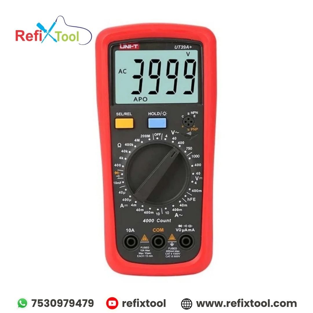 UNI-T UT39A+ Portable True RMS Digital Multimeter is a versatile and portable instrument designed for professionals and electronics enthusiasts. With its robust design and advanced features, this multimeter ensures accurate measurement of electrical parameters while prioritizing user safety. It is equipped with overvoltage and overcurrent alarm functions and high voltage protection to prevent misoperation, complying with CAT II 1000V / CAT III 600V safety standards.