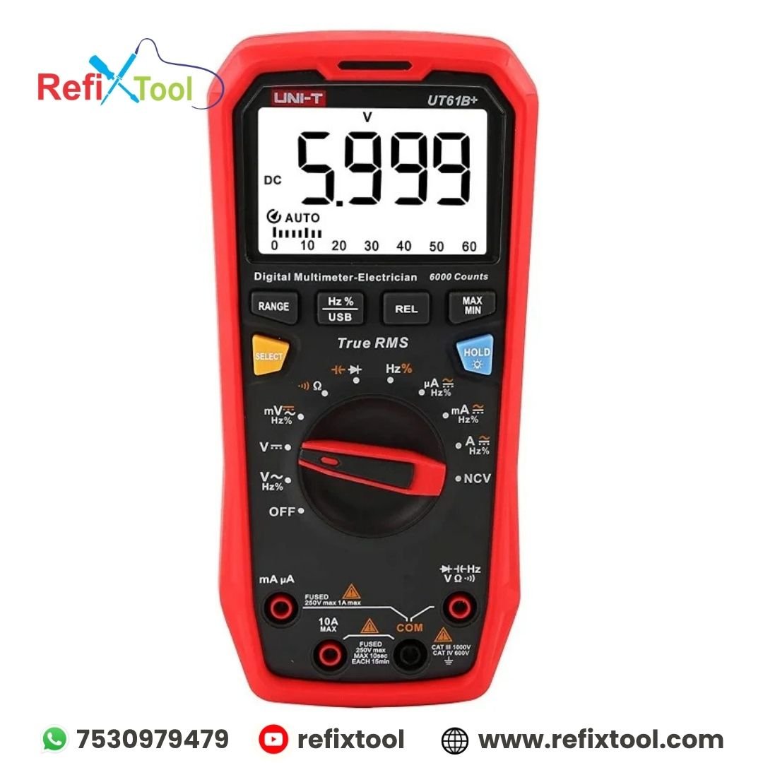 UNIT UT61B+ 1000V AC/DC True RMS Digital Multimeter is a high-performance instrument designed for accurate, safe, and reliable electrical measurements. With a 6000-count LCD display and extended range up to 22,000, this meter is ideal for both professional electricians and advanced hobbyists who require precision in demanding environments.