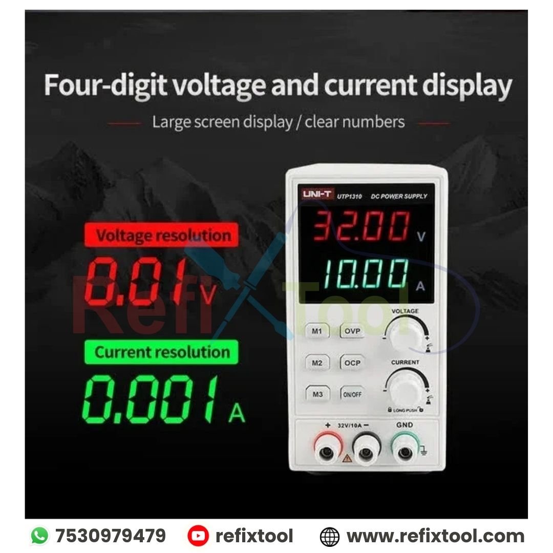 Adjustable Output: 0–32V / 0–10A, with fine control for precision applications.