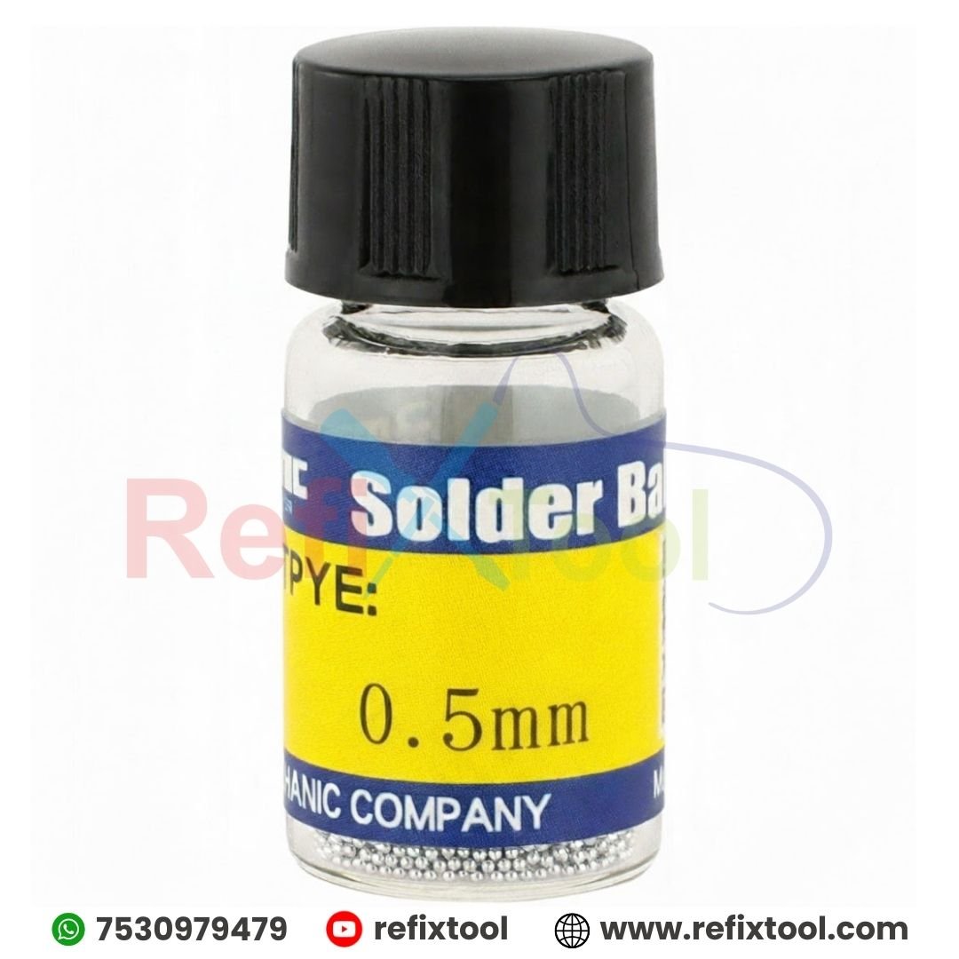 Mechanic BGA Reballing Solder Balls (Sn63Pb37 Alloy) 0.5mm Leaded Solder Balls for IC & Chip Rework is high-purity Sn63Pb37 leaded solder spheres designed for BGA chip reballing, IC repair, and micro-soldering applications. These precision-engineered solder balls provide excellent consistency, quick melting, and strong bonding, making them ideal for professional motherboard, CPU, GPU, and logic board repair work.