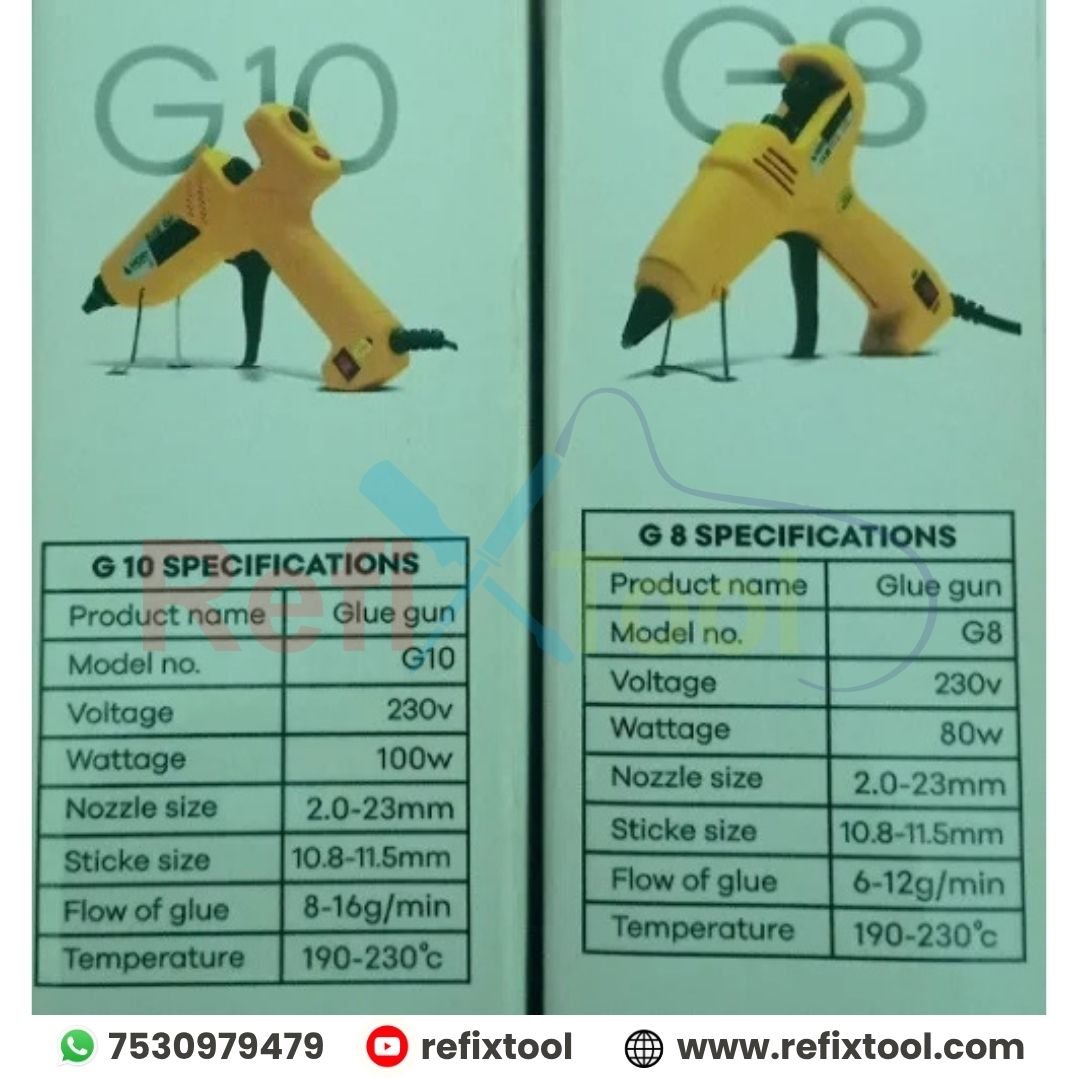 Hoki G10 100W Glue Gun Powerful & Precise Adhesive Tool is a high-performance adhesive tool designed for DIY enthusiasts, crafters, and professionals. With its powerful 100-watt heating element, it ensures rapid heating and smooth, consistent glue flow for all your bonding and repair tasks. Perfect for crafting, home repairs, and various projects, the Hoki G8 provides reliable adhesion with precision and ease.