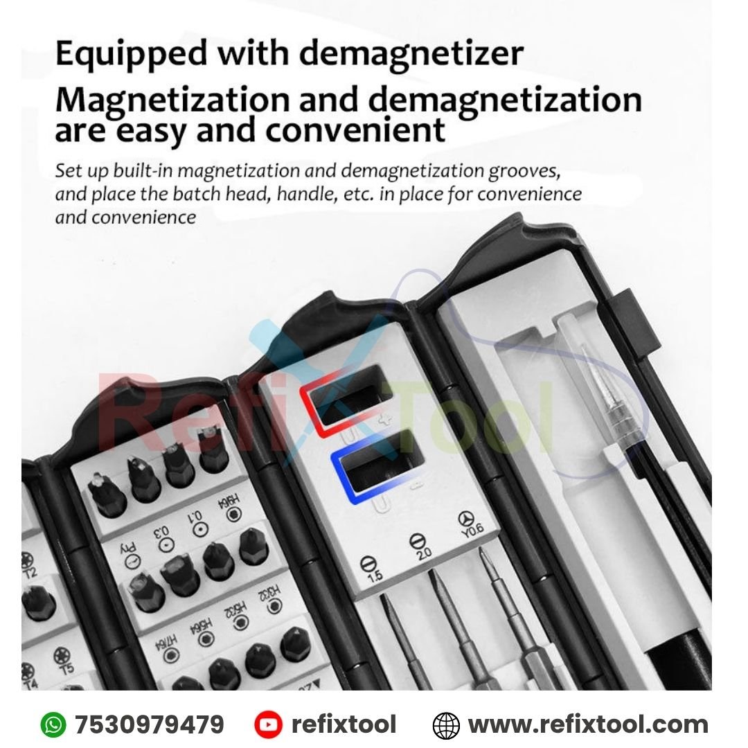 Additional Tools Included: Comes with an aluminum handle, magnetic and demagnetization ports, steel tweezers, steel crowbar, universal extension rod, and 6 pry tools for complete versatility.