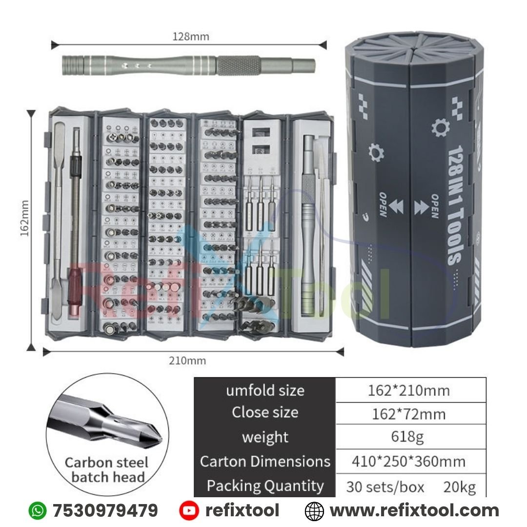 Bamboo Shape Screwdriver 128-in-1 Cylindrical Multi Tool Screwdriver Set High-Quality S2 Steel Bits is a professional repair toolkit designed for modern technicians and DIY users. Inspired by the Chinese bamboo slip design, this set combines aesthetics with functionality. Built with industrial-grade S2 steel bits and an aluminum handle, it’s ideal for repairing laptops, smartphones, glasses, PCs, drones, watches, and other electronics.