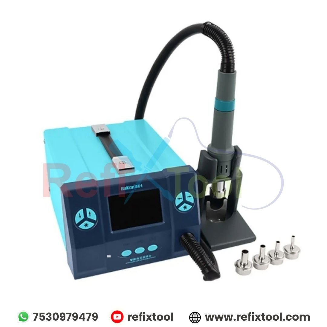 Bakon BK861 SMD Rework Station is a professional-grade tool engineered for precision, reliability, and efficiency in electronic repairs. Perfect for BGA, SMD, and chip-level soldering and desoldering, it offers advanced control, secure settings, and durable performance for technicians and repair professionals.