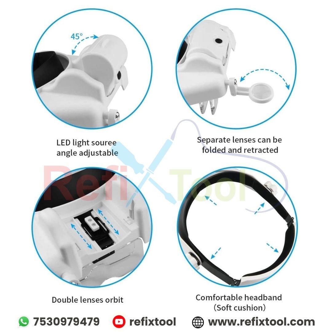Headband Lighted Magnifying Glass with Led, Head Mount Magnifier Glasses combines adjustable magnification with LED illumination, making it perfect for reading, crafting, jewelry making, electronics repair, sewing, and other detailed tasks. Its foldable multi-lens system ensures clear, distortion-free viewing, while the soft padded headband provides comfortable hands-free use.