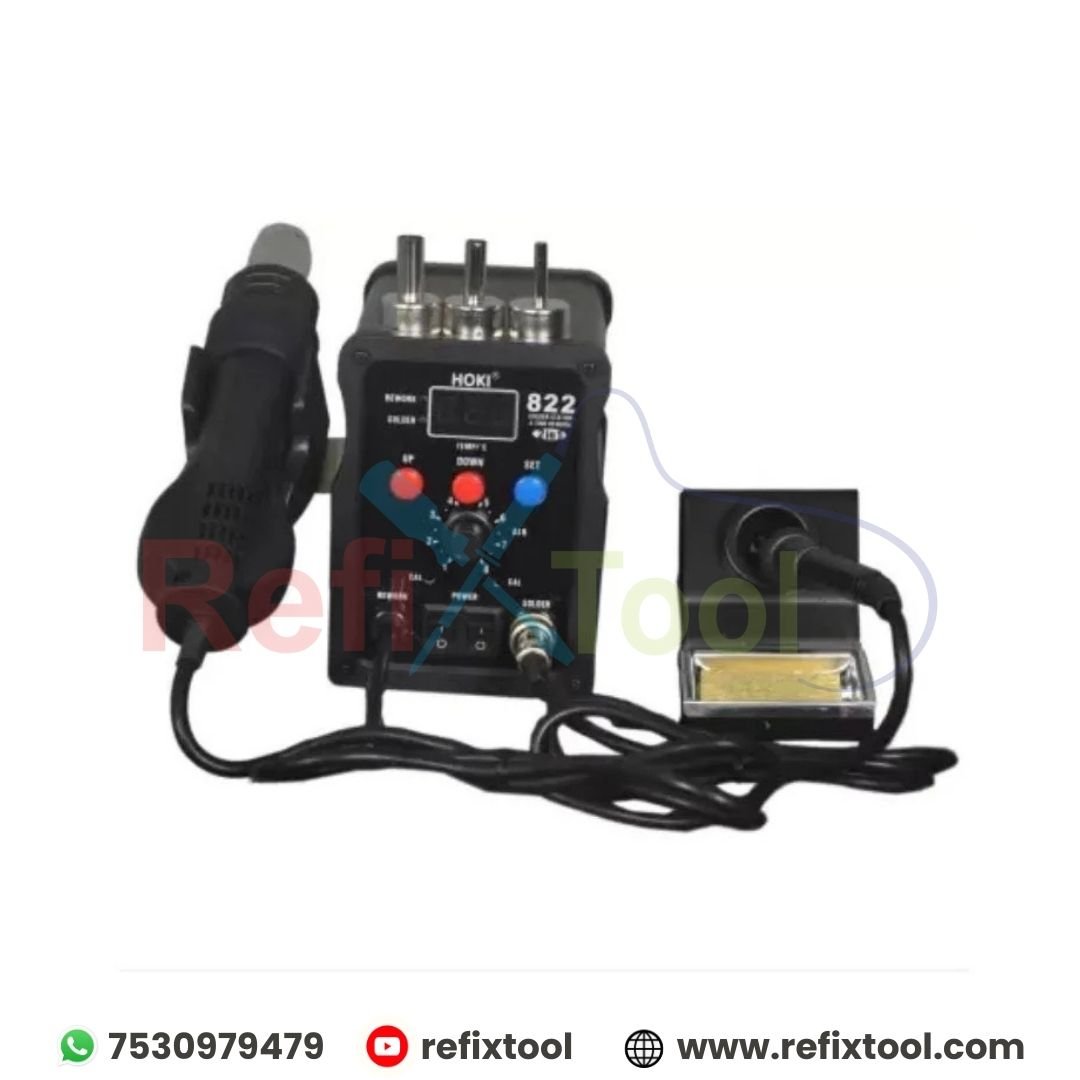 HOKI 822 2-in-1 Rework Station Hot Air & Soldering Combo combines powerful hot air rework capabilities with a precision soldering iron in a single compact unit. Ideal for professionals and hobbyists alike, this station ensures accurate temperature control, stable airflow, and efficient performance for all SMD rework and soldering tasks.