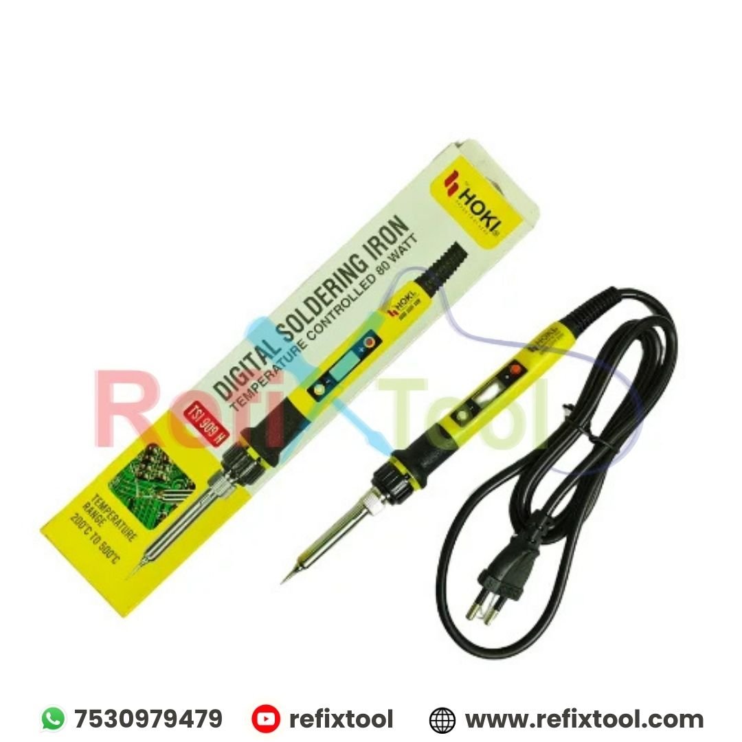 Hoki TSI 909H 80w Portable digital soldering iron temperature with controler is a professional-grade digital soldering iron designed for precision, safety, and durability. With an adjustable temperature range and smart digital display, it ensures accurate control and improved soldering quality for electronics repair and DIY projects.