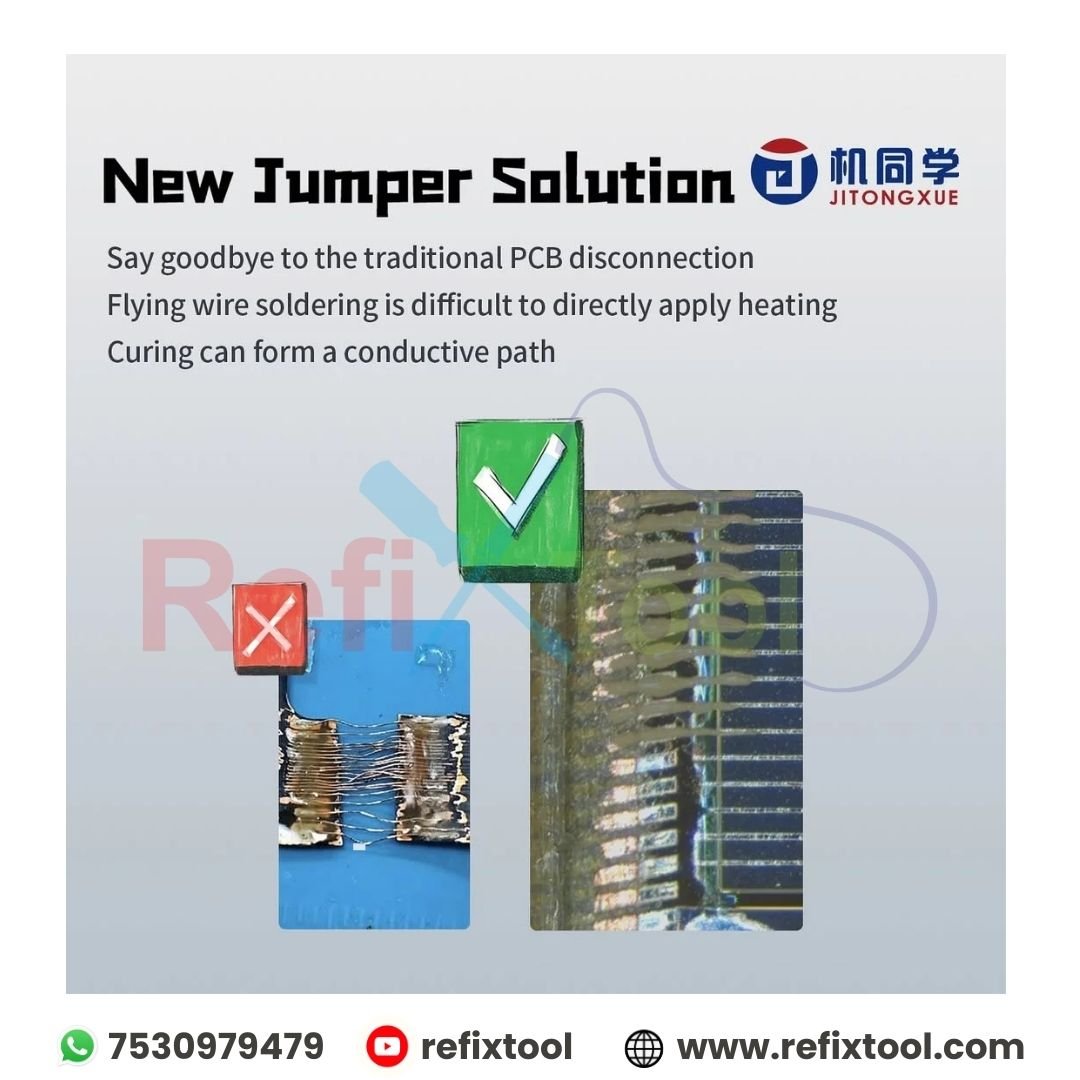 Jumper Conductive Silver Screen Repair Solution for iPhone & Android PCB is a professional-grade repair solution designed for fixing broken PCB lines, restoring damaged iPhone and Android screens, and repairing flexible circuits. With ultra-low resistance and excellent conductivity, this silver paste is ideal for creating reliable electrical connections where traditional soldering is difficult or risky.