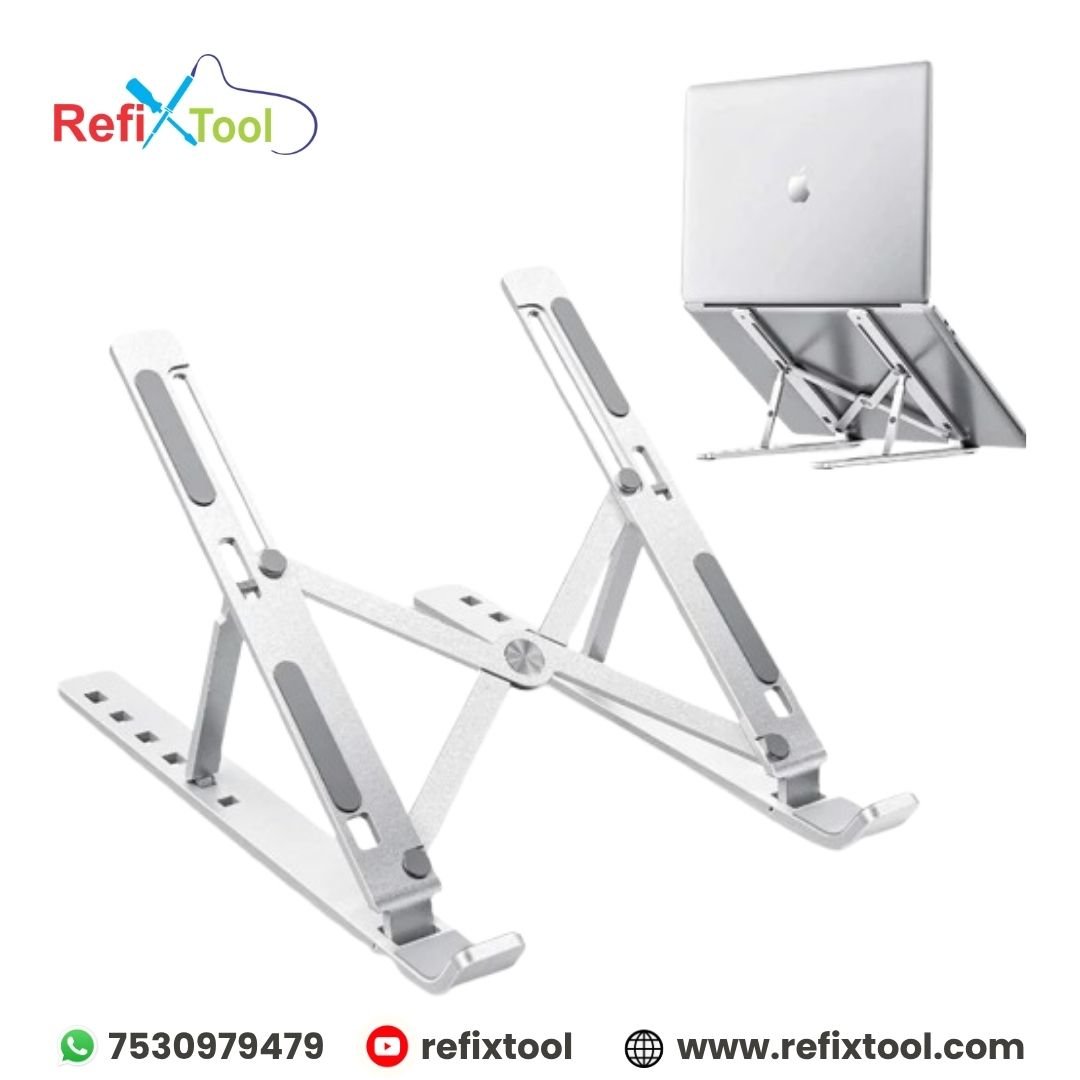 Laptop Stand Foldable Height Adjustable Metal Frame upgrade your workspace with this Foldable Height Adjustable Laptop Stand, designed to improve posture, enhance comfort, and boost productivity. Made from durable aluminum alloy with silicone padding, it provides stable support for your laptop while keeping it cool during extended use.