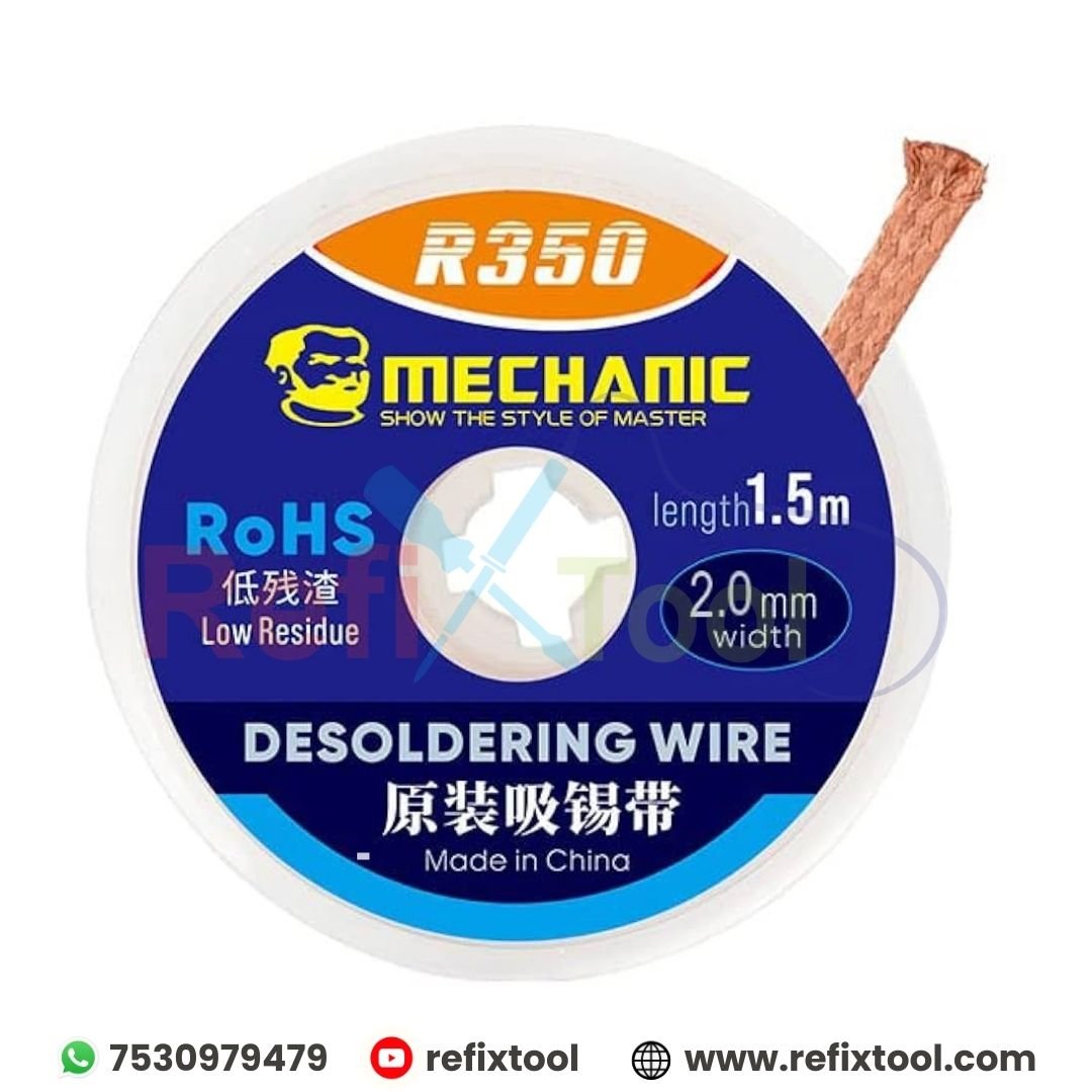Mechanic R350 Desoldering Wire (1.5M) is a high-quality copper braid designed for precise and efficient solder removal. Perfect for repairing and reworking PCBs, this desoldering wire ensures a clean and reliable soldering experience.