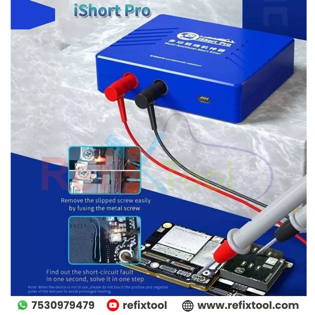 Mechanic iShort Pro Multi Function Short Killer 30a is a professional-grade short-circuit detector and removal tool designed for mobile phone, laptop, and electronics motherboard repair. With a maximum output current of 30A, it can quickly locate, isolate, and eliminate short-circuits within seconds—making it an essential tool for repair technicians and electronics engineers.
