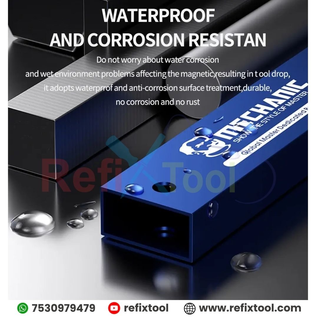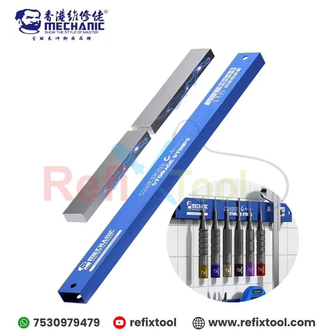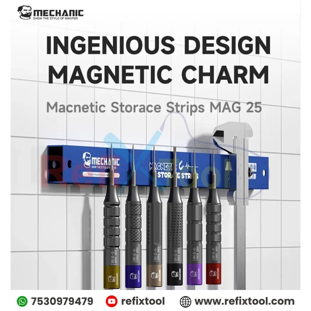 MECHANIC MAG25 Magnetic Storage Strip Tool Holder & Organizer is designed to keep your workspace neat, organized, and efficient. With its strong double-layer magnets, it securely holds a wide range of metal tools such as screwdrivers, pliers, wrenches, tweezers, blades, bits, and other iron accessories. Perfect for phone repair shops, electronics workbenches, garages, kitchens, and industrial tool areas.