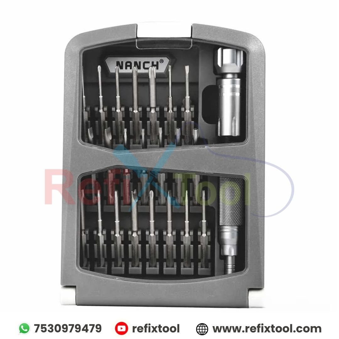 Nanch 22-in-1 Precision Screwdriver Set for Computer,Smartphone,iPhone,Game Console and other Electronics Devices Set is a premium repair kit engineered for professionals and DIY users who need accuracy, durability, and versatility. Designed with an ergonomic aluminum handle and 22 long S2 alloy steel bits, this toolkit is perfect for repairing computers, smartphones, tablets, MacBooks, cameras, gaming consoles, watches, and more.