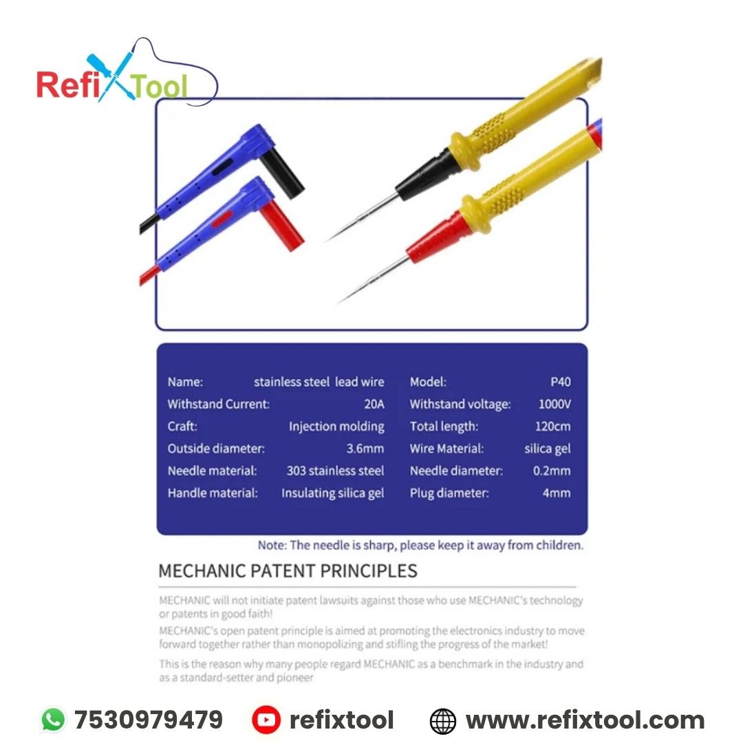 P40 Stainless Stee Multimeter Probe Tip, built for professionals who demand accuracy, safety, and long-term durability. Crafted from premium 303 stainless steel with high-conductivity copper and insulated with soft silica gel, this probe tip ensures stable performance in even the harshest environments.