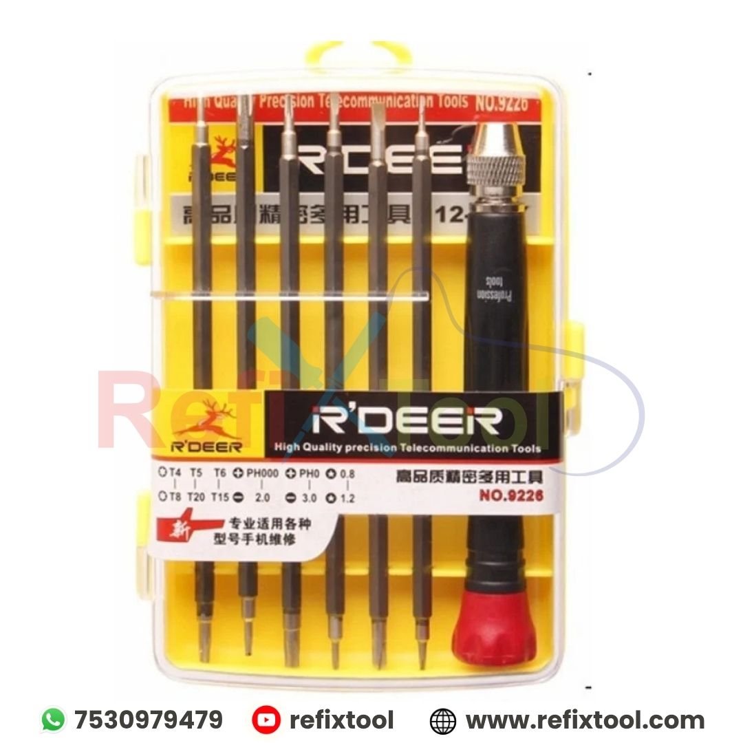 R'DEER No.9226 Handy Precision Maintenance Tool Screwdriver Set is a versatile and durable toolkit designed for electronics, mobile phones, laptops, and other small gadgets. With 6 double-sided S2 steel bits and a reversible handle, it offers convenience and precision for everyday maintenance tasks.