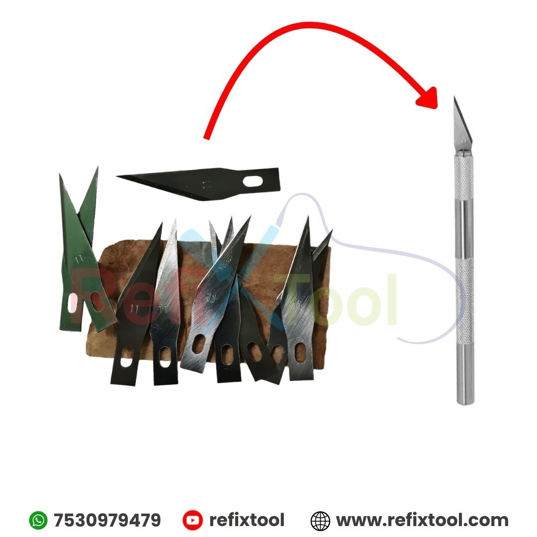 Ultra-Sharp Precision Repair Knife Kit for Mobile & Laptop Repair (Pack of 10) is an essential tool for technicians and hobbyists who require extreme accuracy. The kit features a high-quality, non-slip metal handle and a pack of 10 replaceable #11 carbon steel blades, making it perfect for intricate tasks like mobile IC cleaning, PCB repairing, and DIY crafting.